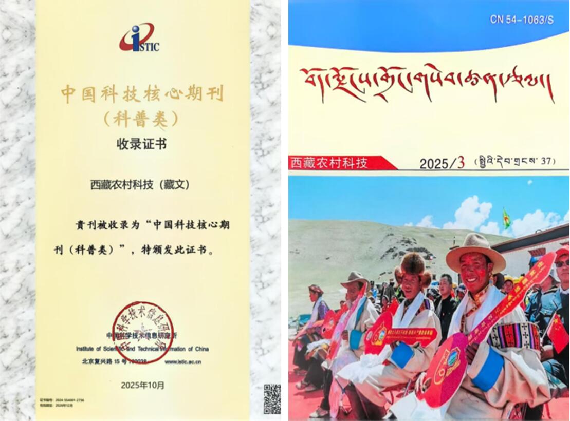 日前,“2025年中国科技论文统计结果发布会”发布中国科技核心期刊遴选结果。由西藏自治区科学技术厅主管、西藏自治区科技信息研究所主办的《西藏农村科技(藏文)》入选“中国科技核心期刊(科普类)”,成为全国52种科普类核心期刊中唯一的藏文期刊。