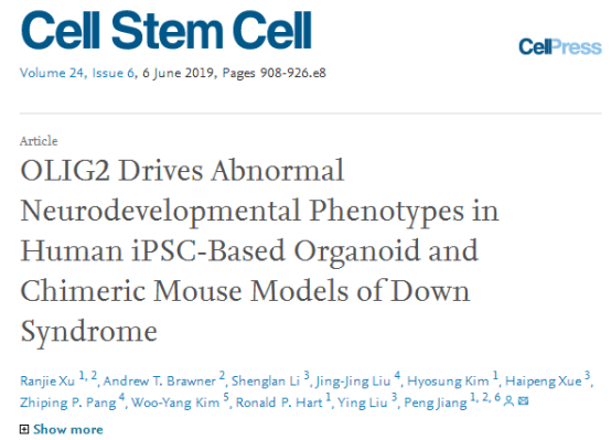 利用可以转化为大脑中其它细胞的干细胞,研究人员开发了两种实验模型——一种活的3D“类器官”(Organoid)大脑模型和一种植入人体细胞的小鼠脑模型——用于研究与唐氏综合征相关的早期大脑发育。该研究的重点是人类21号染色体基因OLIG2。