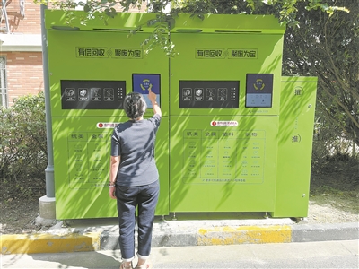 上海市民在使用智能分类回收机。
