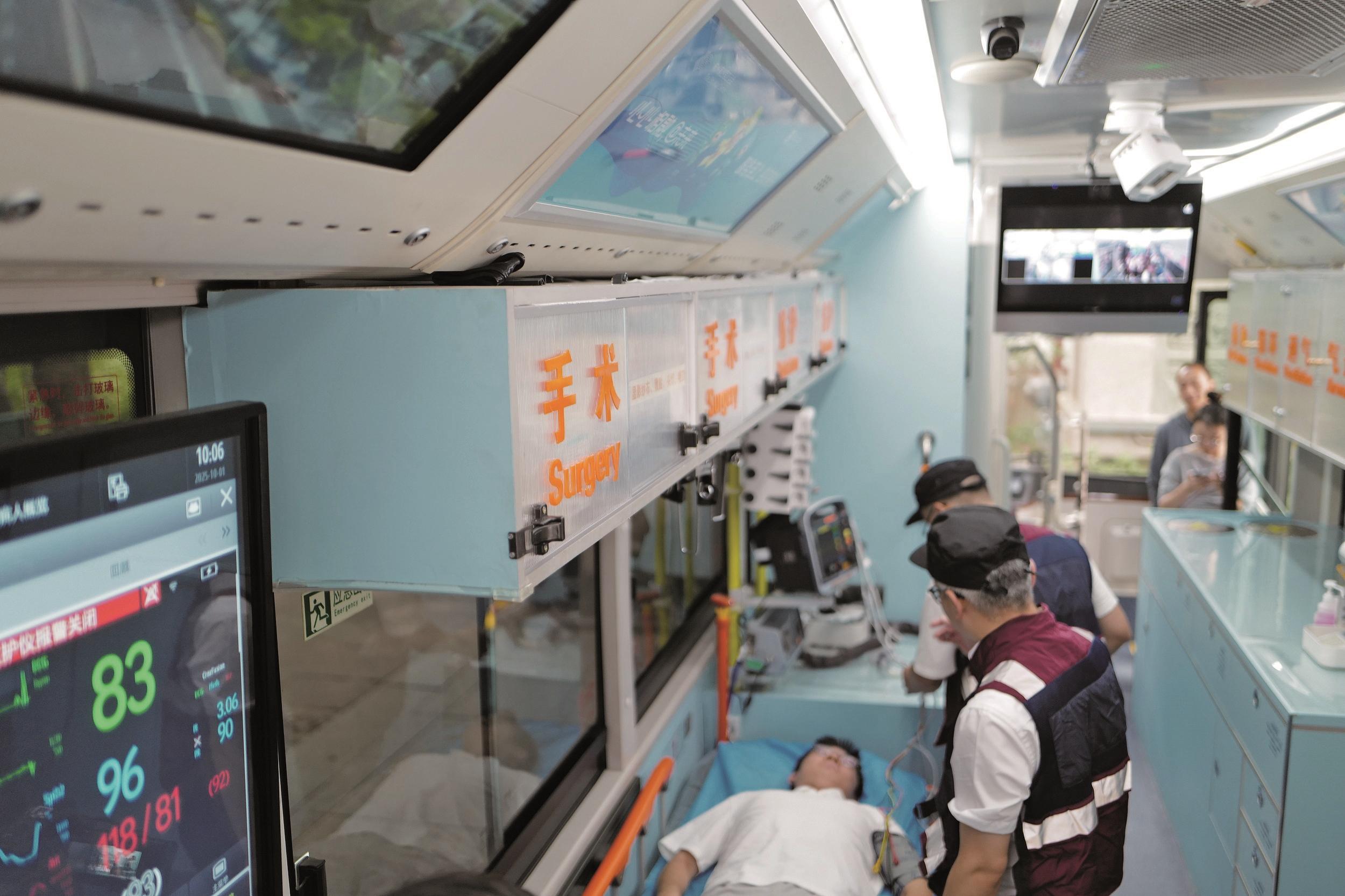 图③: 2025年10月1日,浙大二院将大型5G移动急救复苏单元开进浙江杭州吴山城隍阁景区,不仅为游客提供安全保障,也为人们带来全方位的健康科普宣教。视觉中国供图